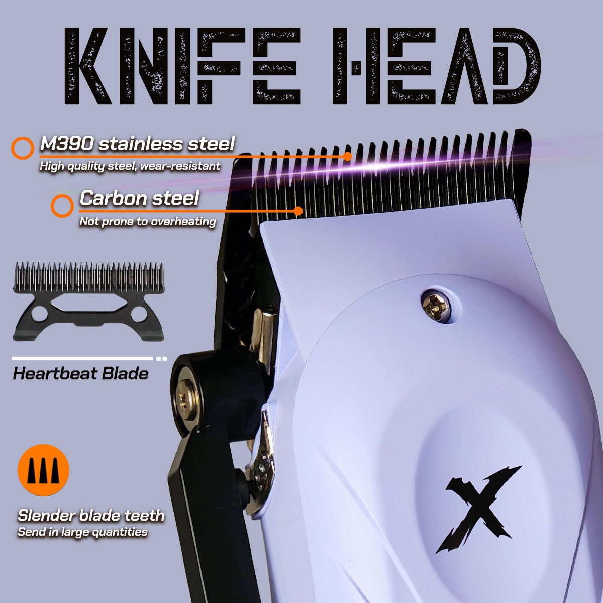 Trang bị lưỡi dao nhịp tim M390, nổi tiếng với độ sắc bén và độ bền vượt trội. Tạo ra những đường cắt mượt mà, hạn chế giật tóc tối đa.